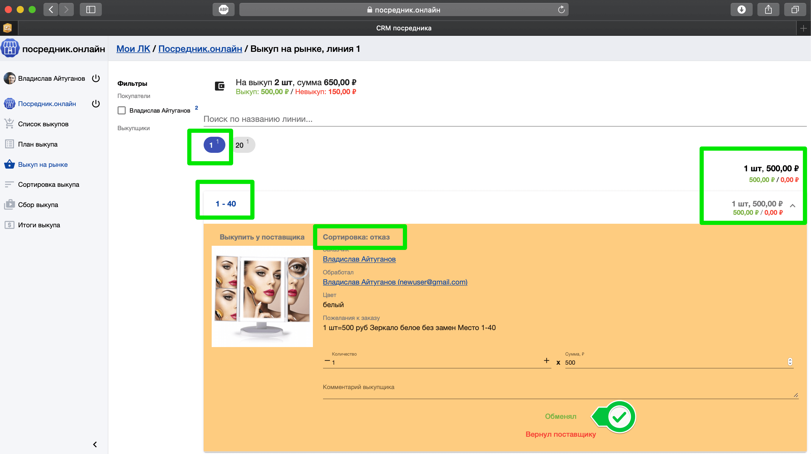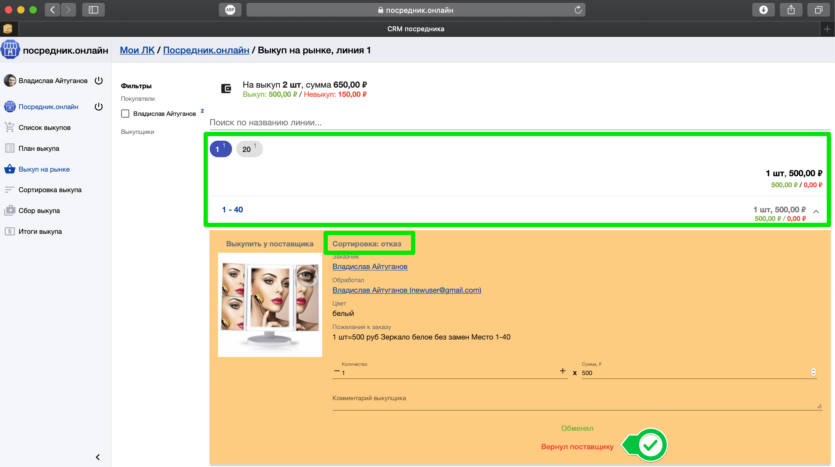 Администратор будет видеть абсолютно все позиции, а выкупщик лишь те, которые на него назначены.