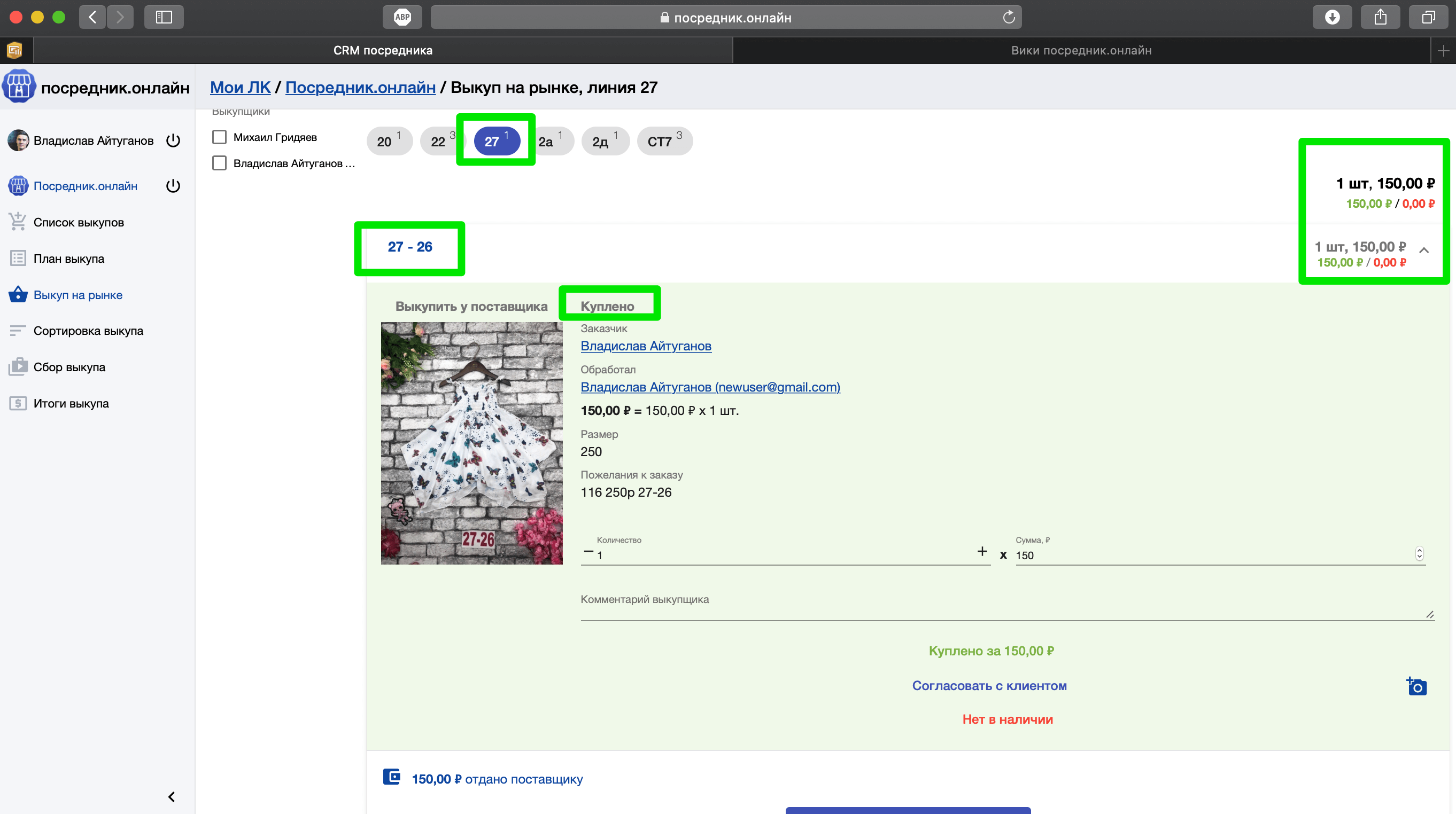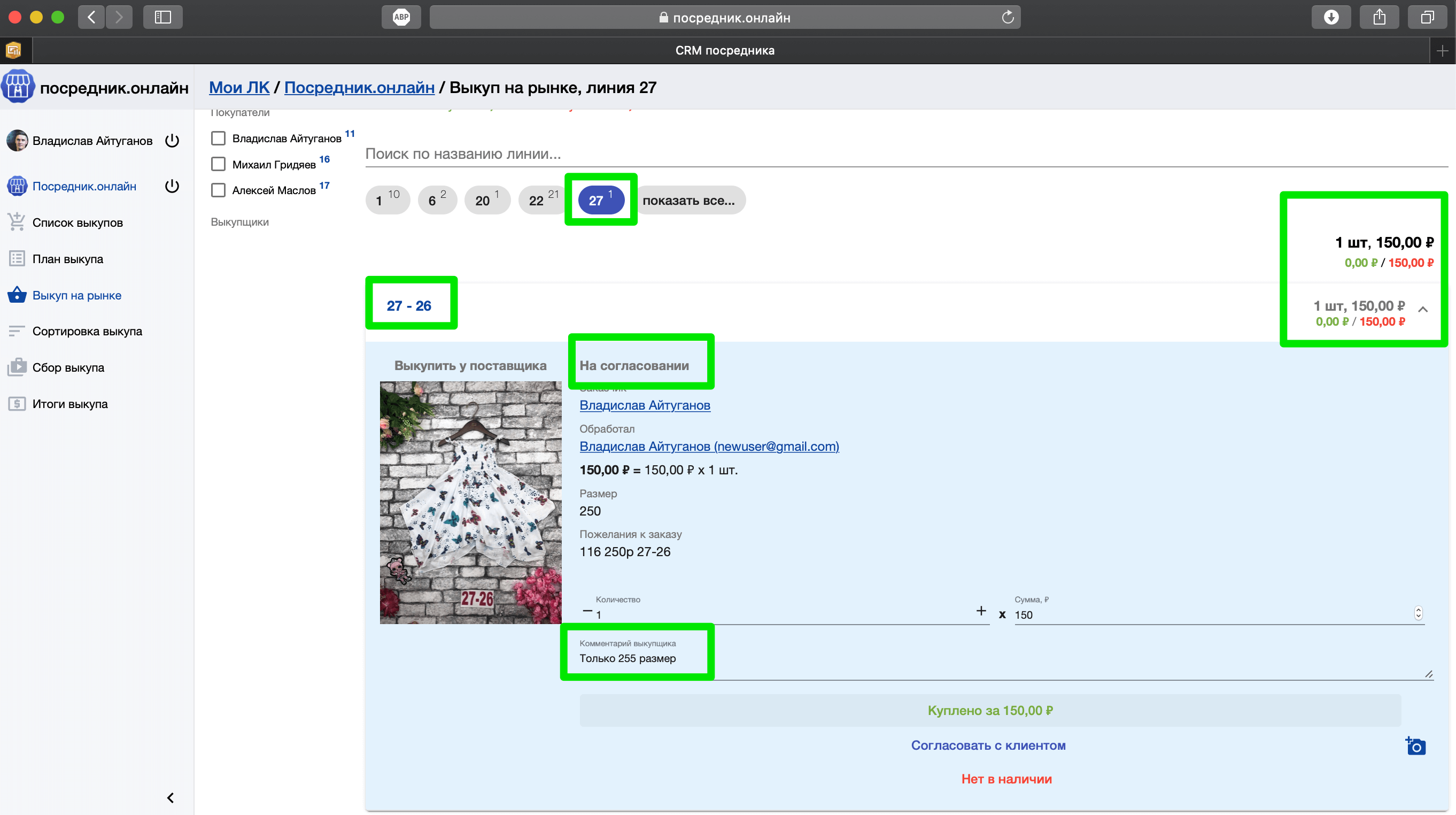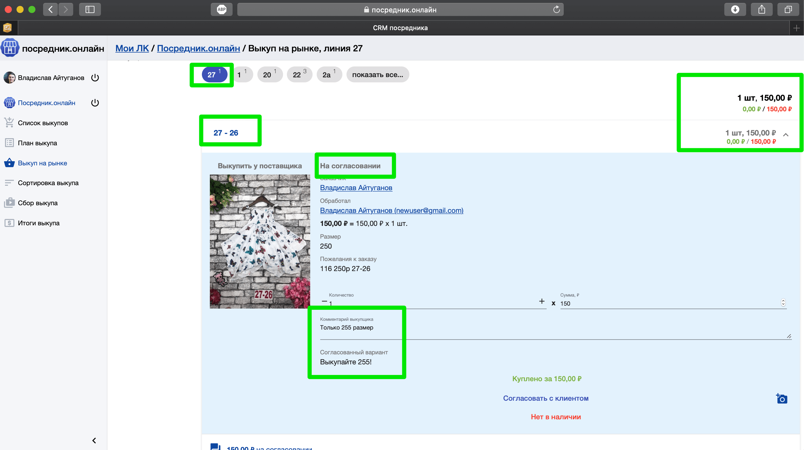 варианты покупки) и фотографию. Как только клиент согласует выкуп позиции, она сразу изменит статус на