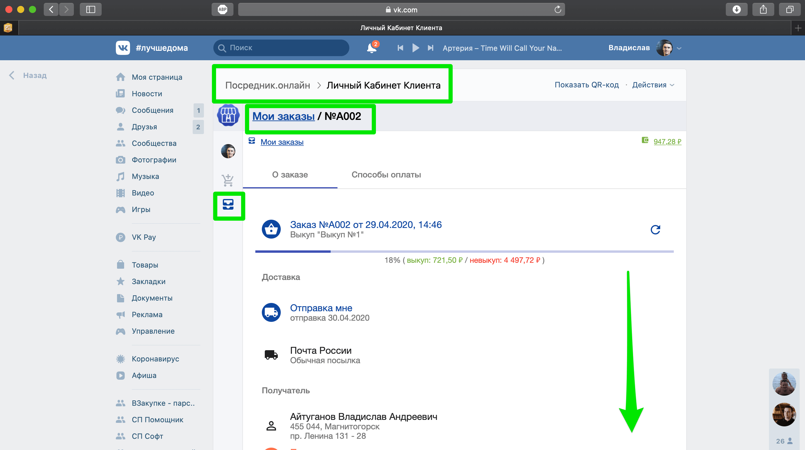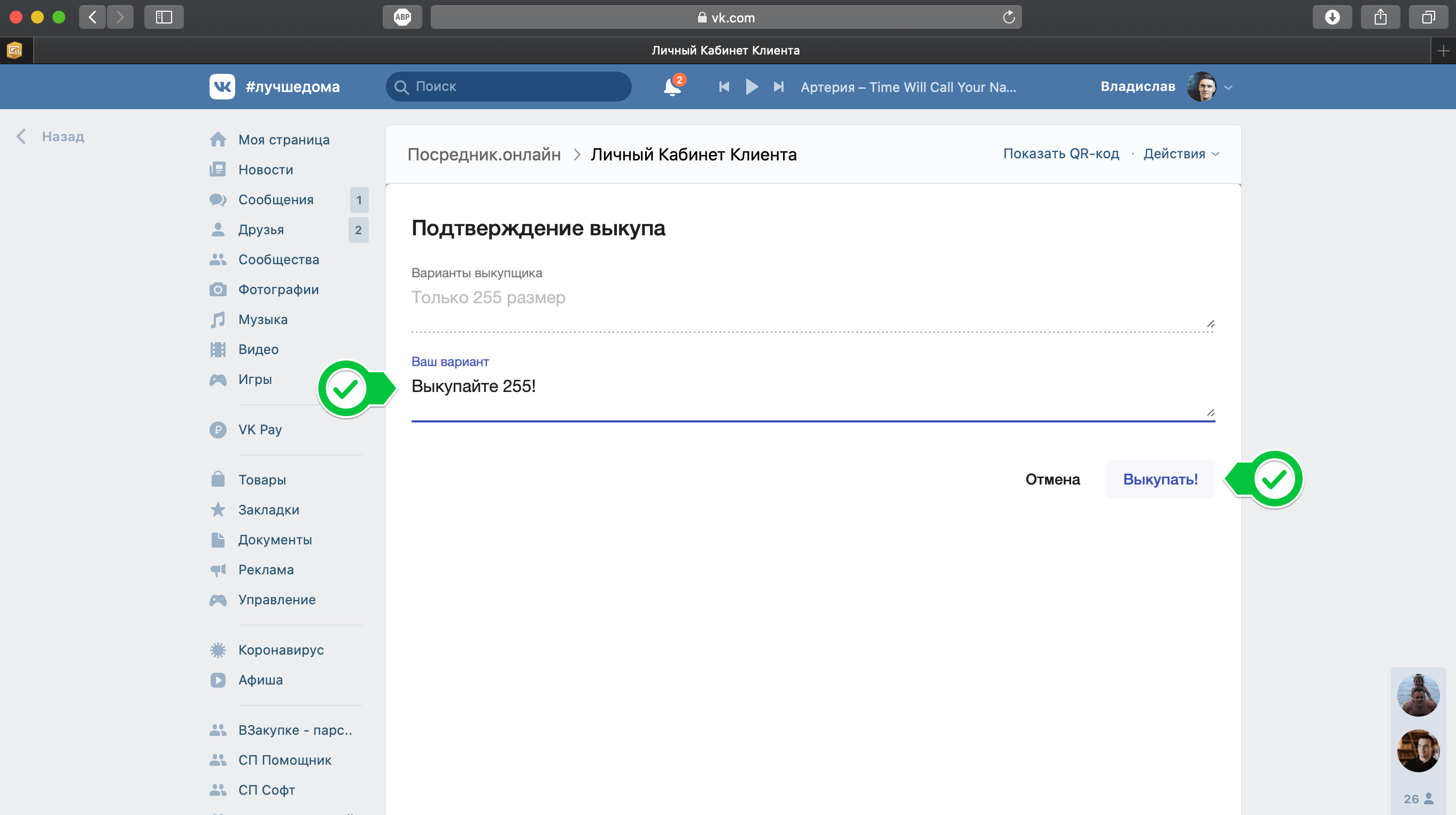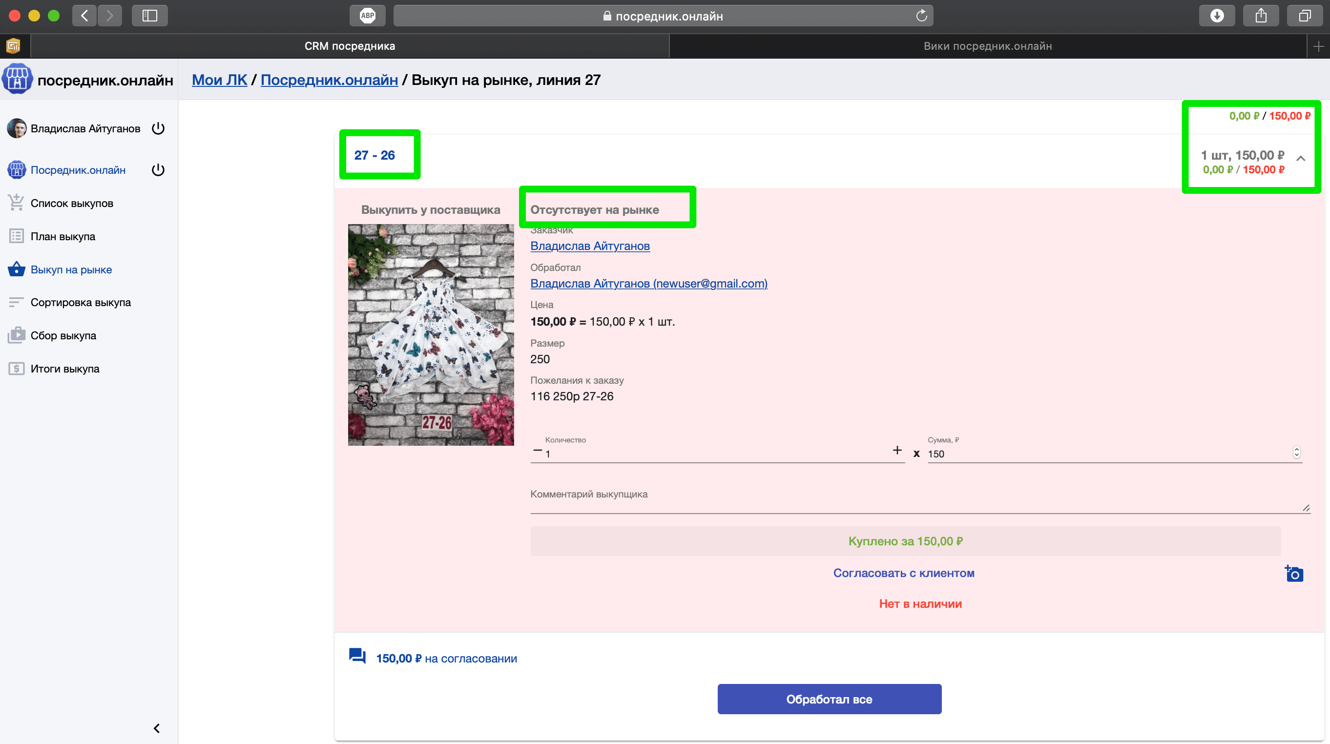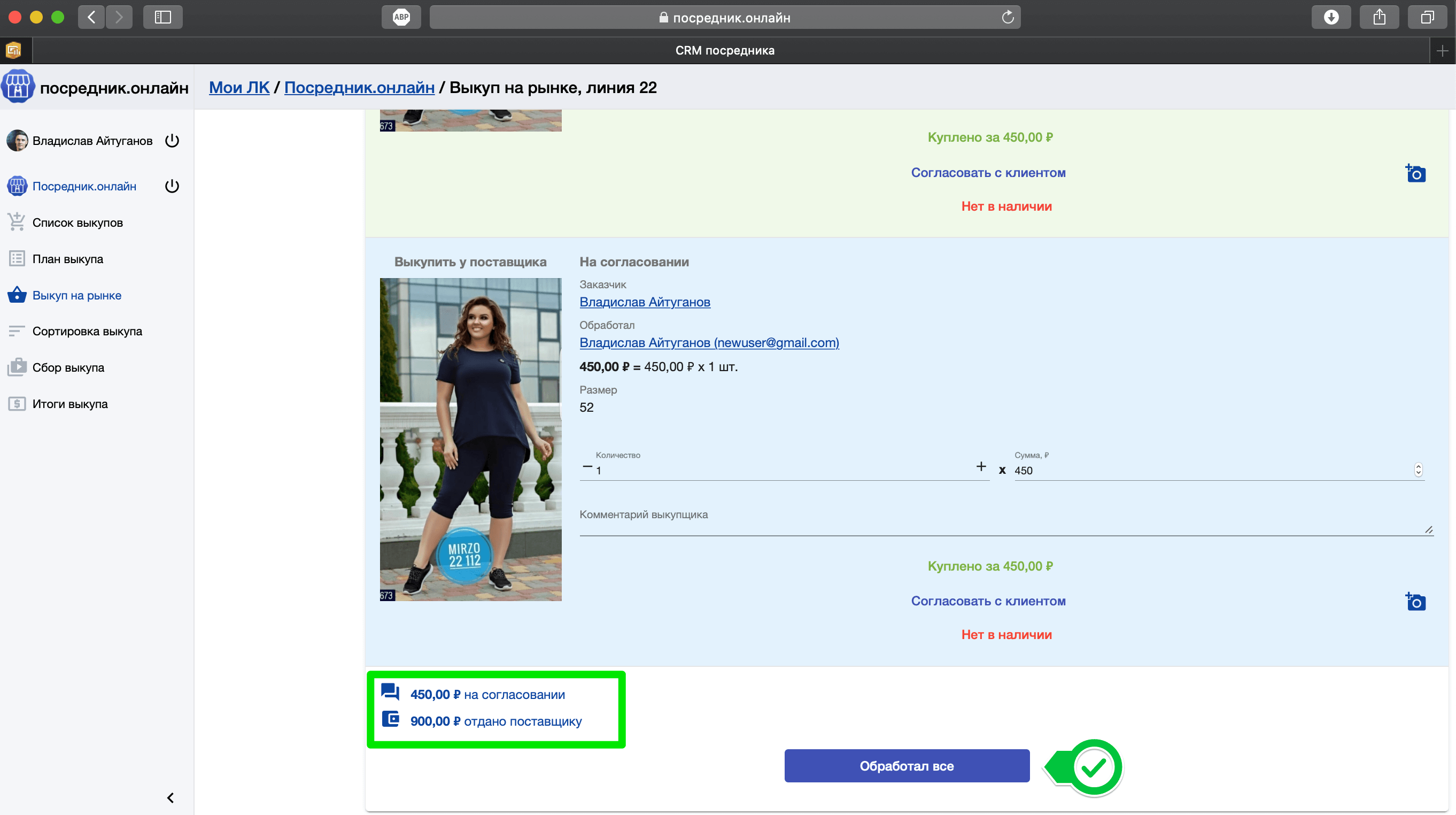 варианты покупки) и фотографию. Как только клиент согласует выкуп позиции, она сразу изменит статус на