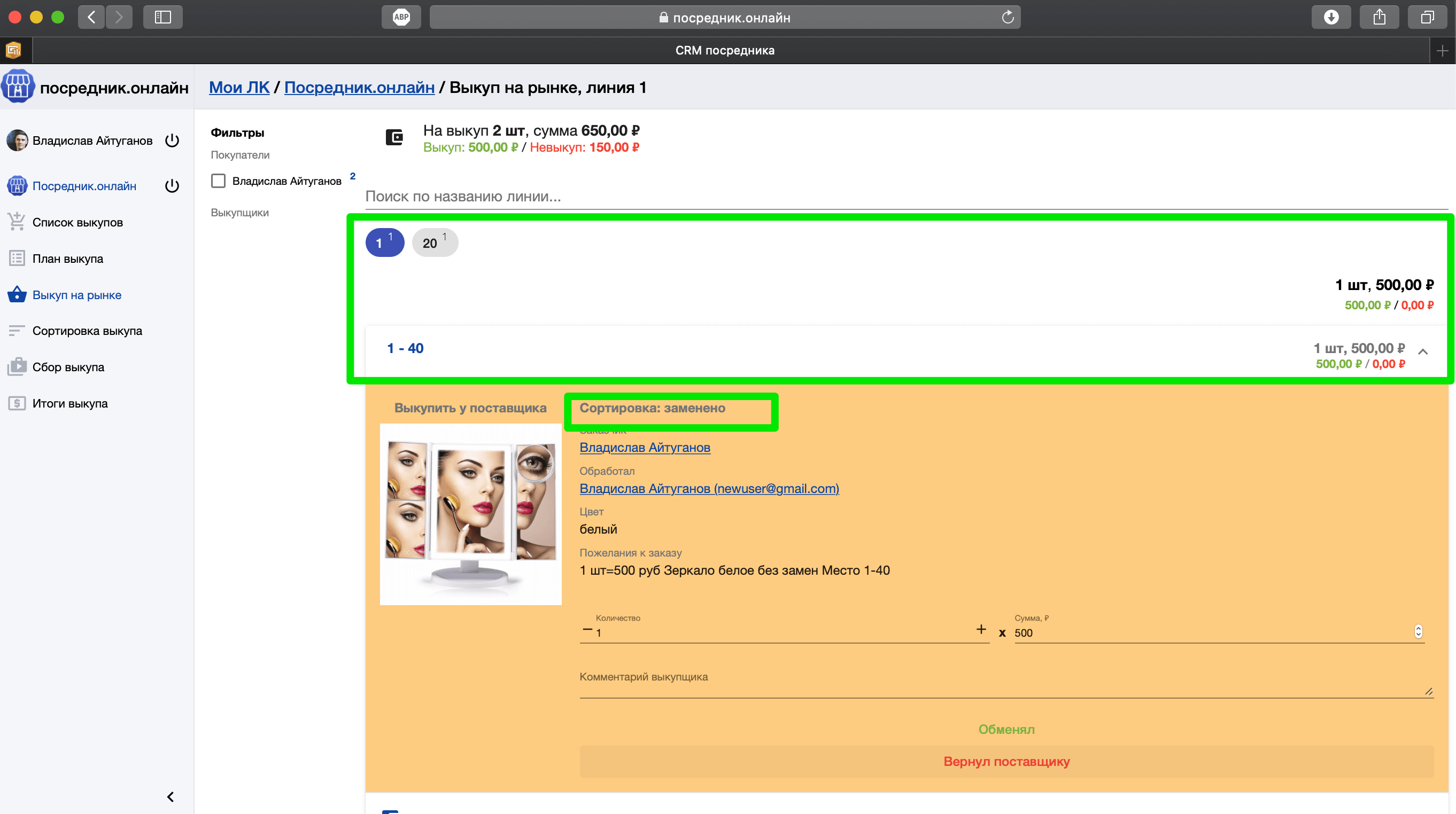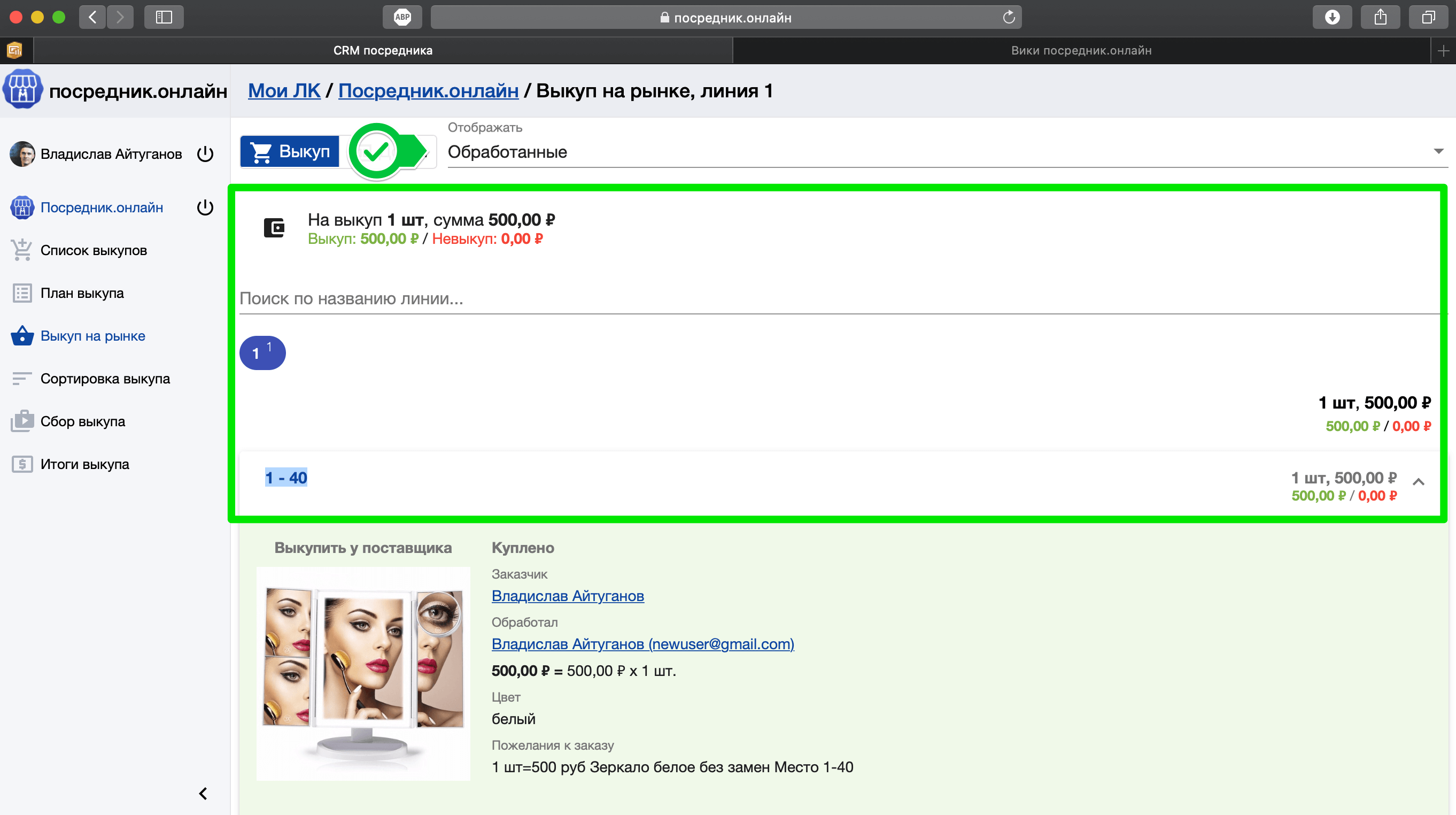 Позиции считаются обработанными, когда выкупщик купил все позиции по месту и нажал на кнопку "Обработал все". После обработки той или иной позиции мы автоматически отправим изменения в ЛК клиента, для позиций которого произошли изменения (раздел "История заказов").