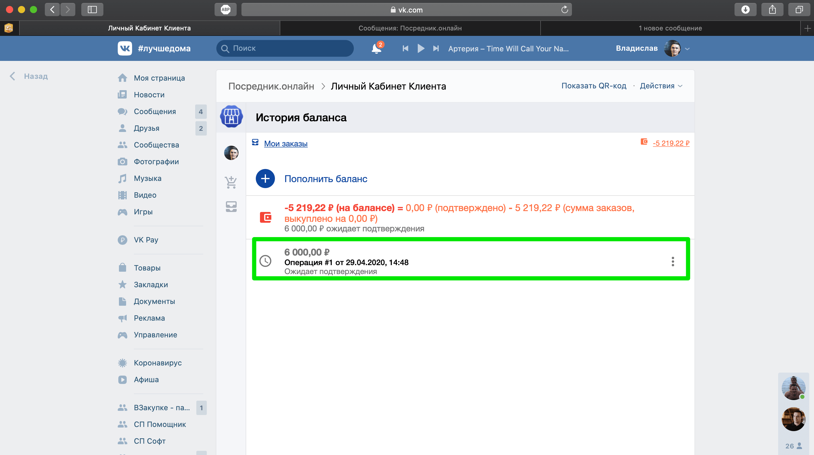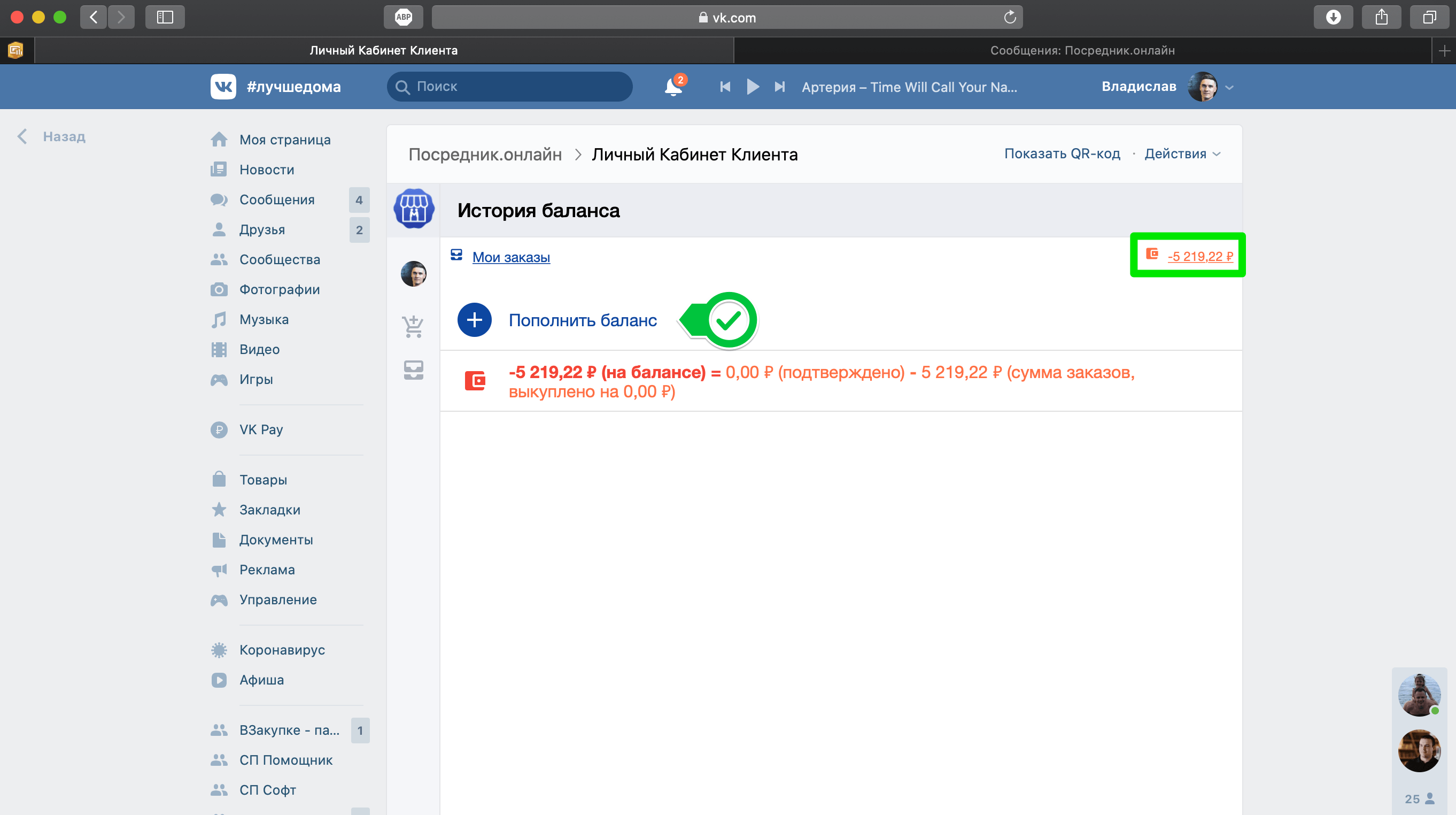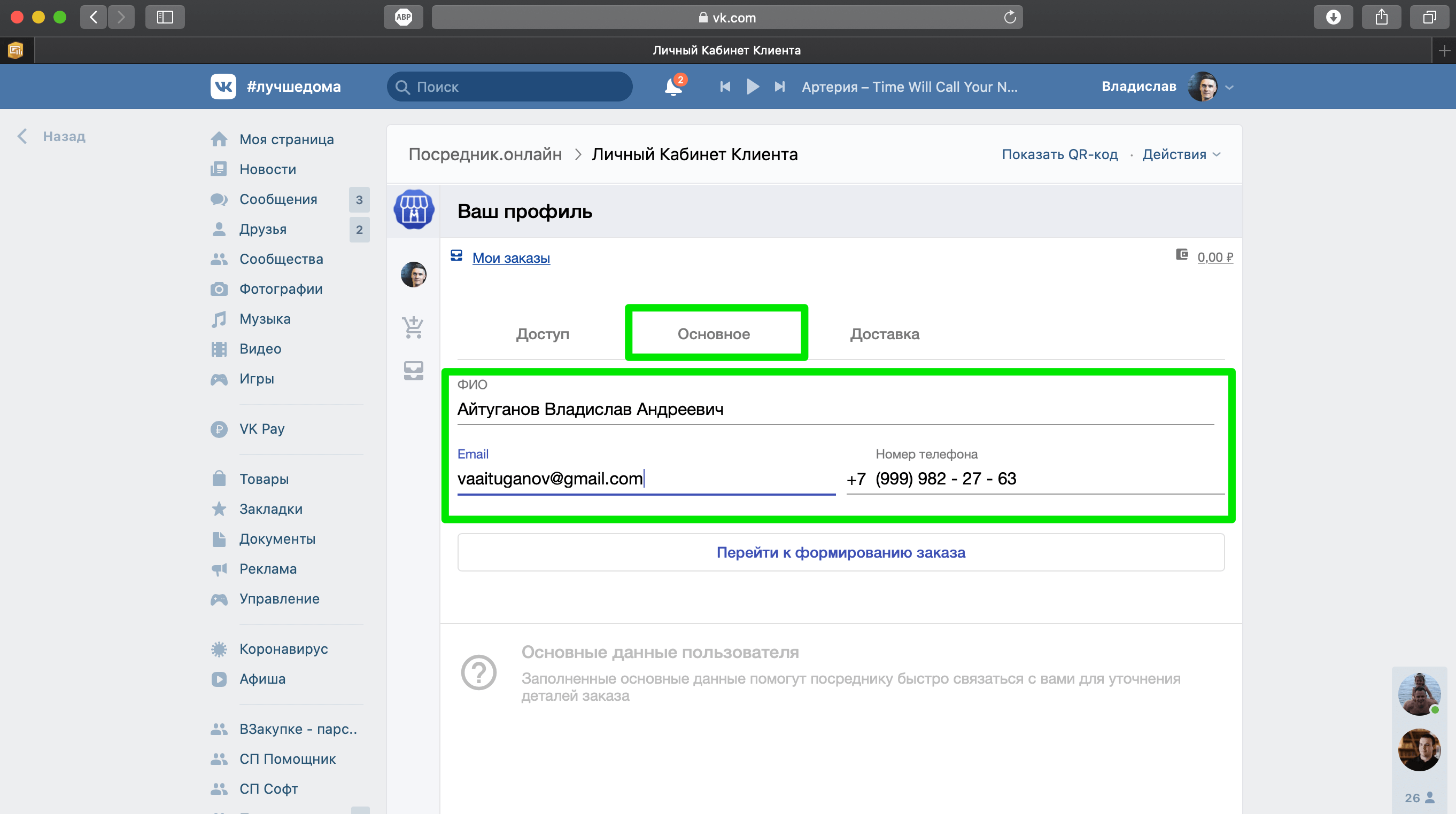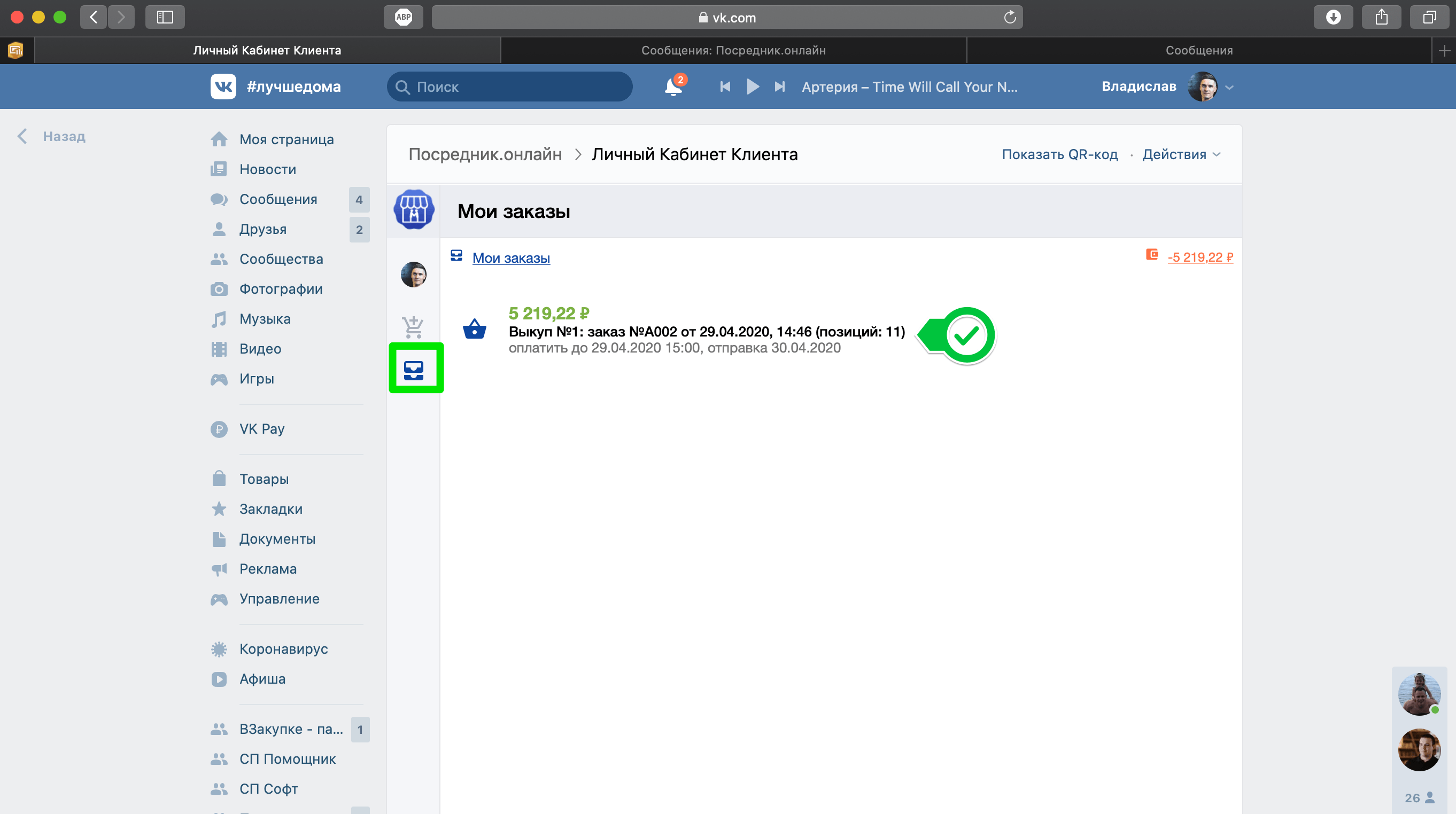 Для начала клиенту необходимо открыть ЛК в группе посредника, у которого он хочет оформить заказ.